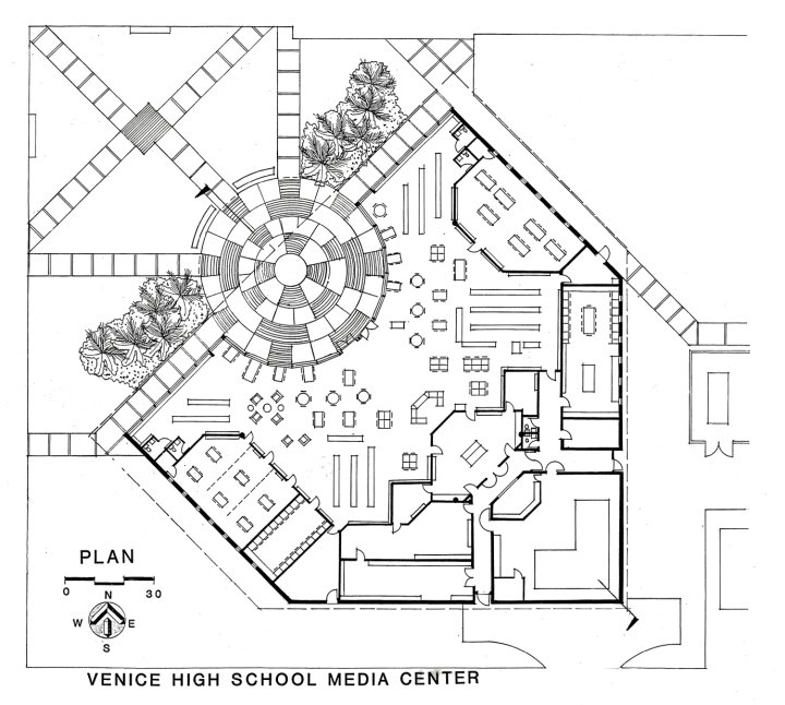 a gathering space for students which is easily supervised. The interior space benefits from the
